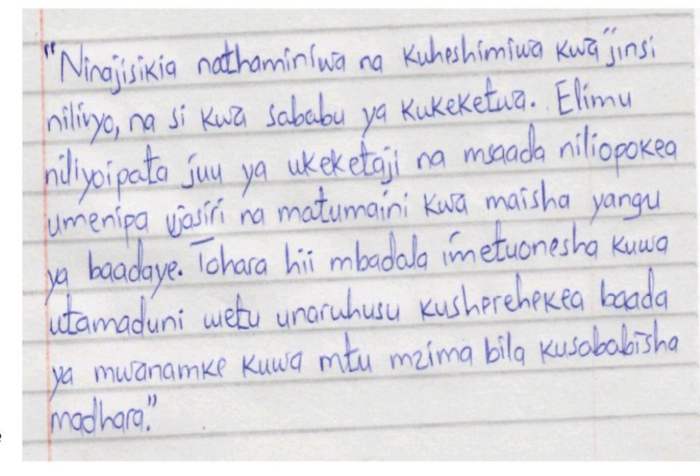 Distribute papers to students and ask them to write about any cases of gender-based violence, particularly female genital mutilation (FGM), that they themselves have experienced or heard about regarding a classmate’s parents planning to subject them to it, without identifying their names. Then, collectively present these cases to the teachers of guidance, the head teacher, and district welfare and development officers. The paper have no names of students.